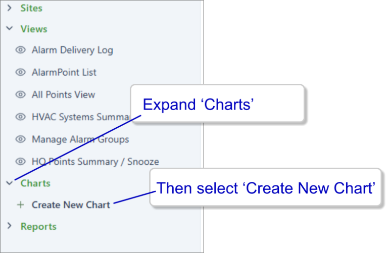 1. From the tree along the left margin, expand the ‘Charts’ node, and then select ‘Create New Chart’.